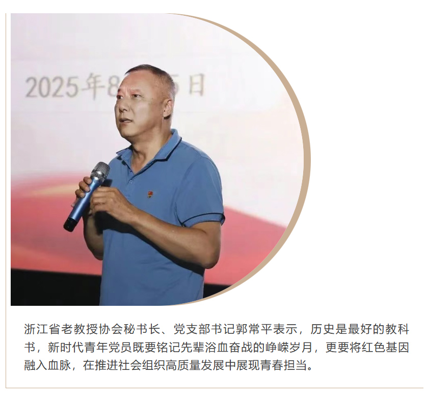 光影落幕,精神长存。本次活动既是对抗战历史的深情致敬,更是对红色精神的时代传承。站在新的历史坐标上,在省社会组织综合党委的坚强领导下,总会将与广大社会组织一道,努力将爱国热情转化为服务大局的实际行动,在助力民生改善、推动行业发展中担当作为,共同绘就浙江社会组织高质量发展新画卷。