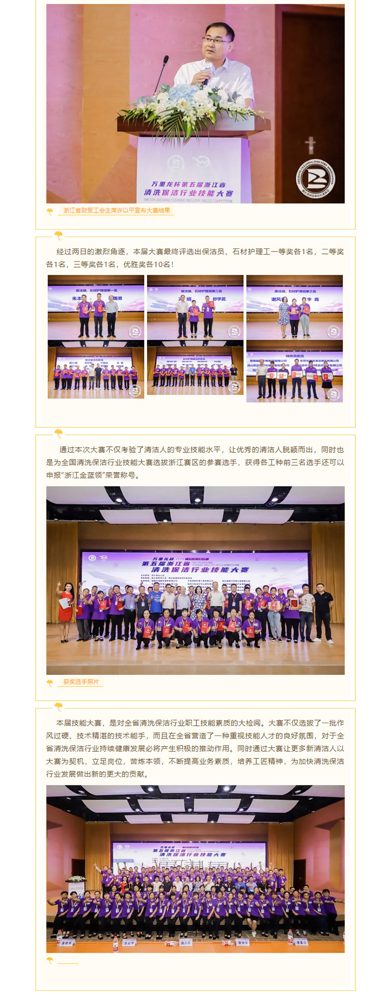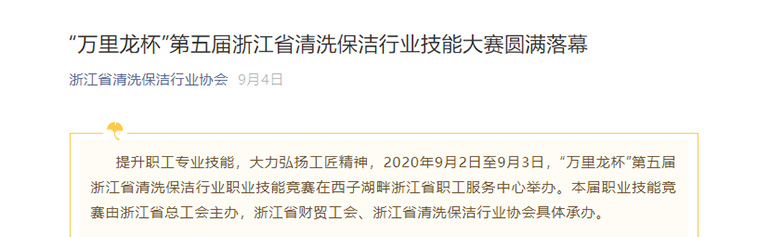 “万里龙杯”第五届浙江省清洗保洁行业技能大赛圆满落幕