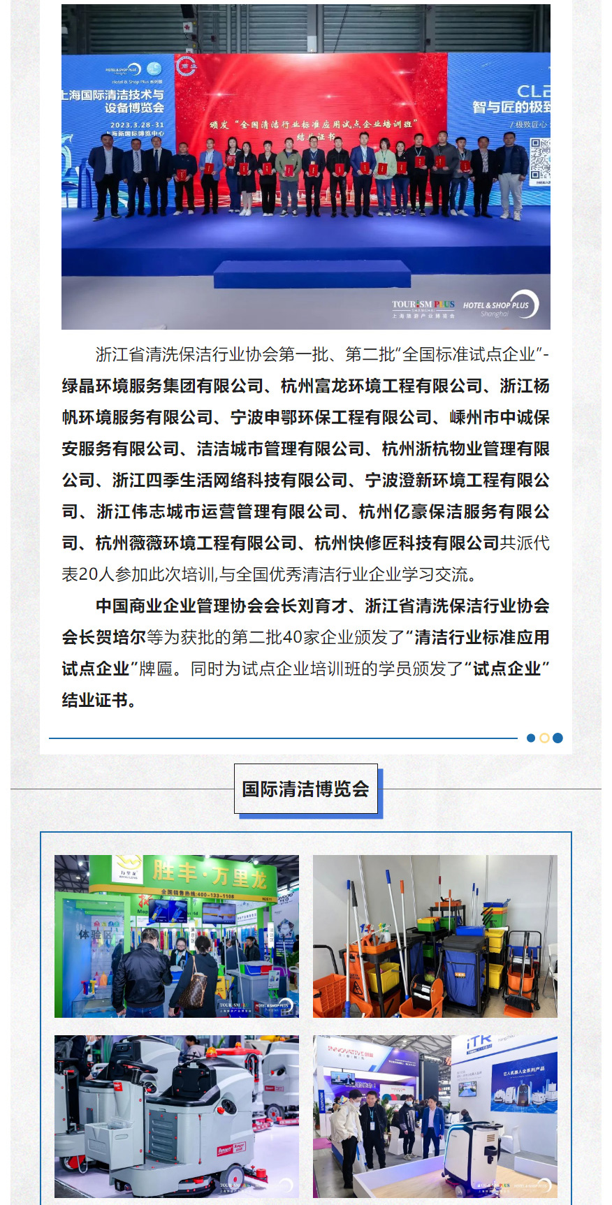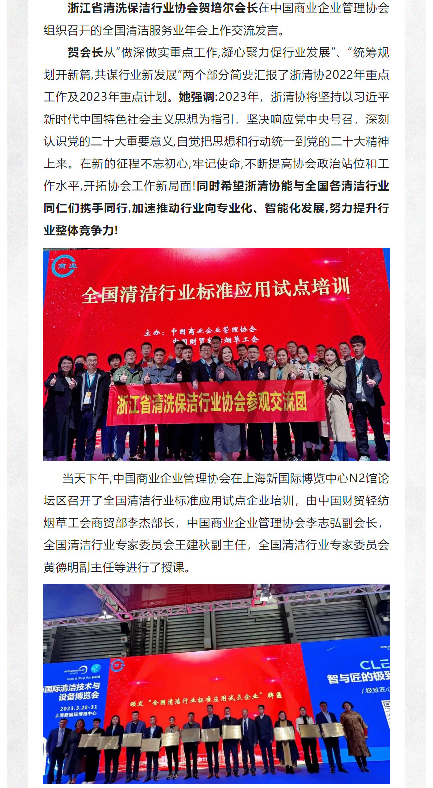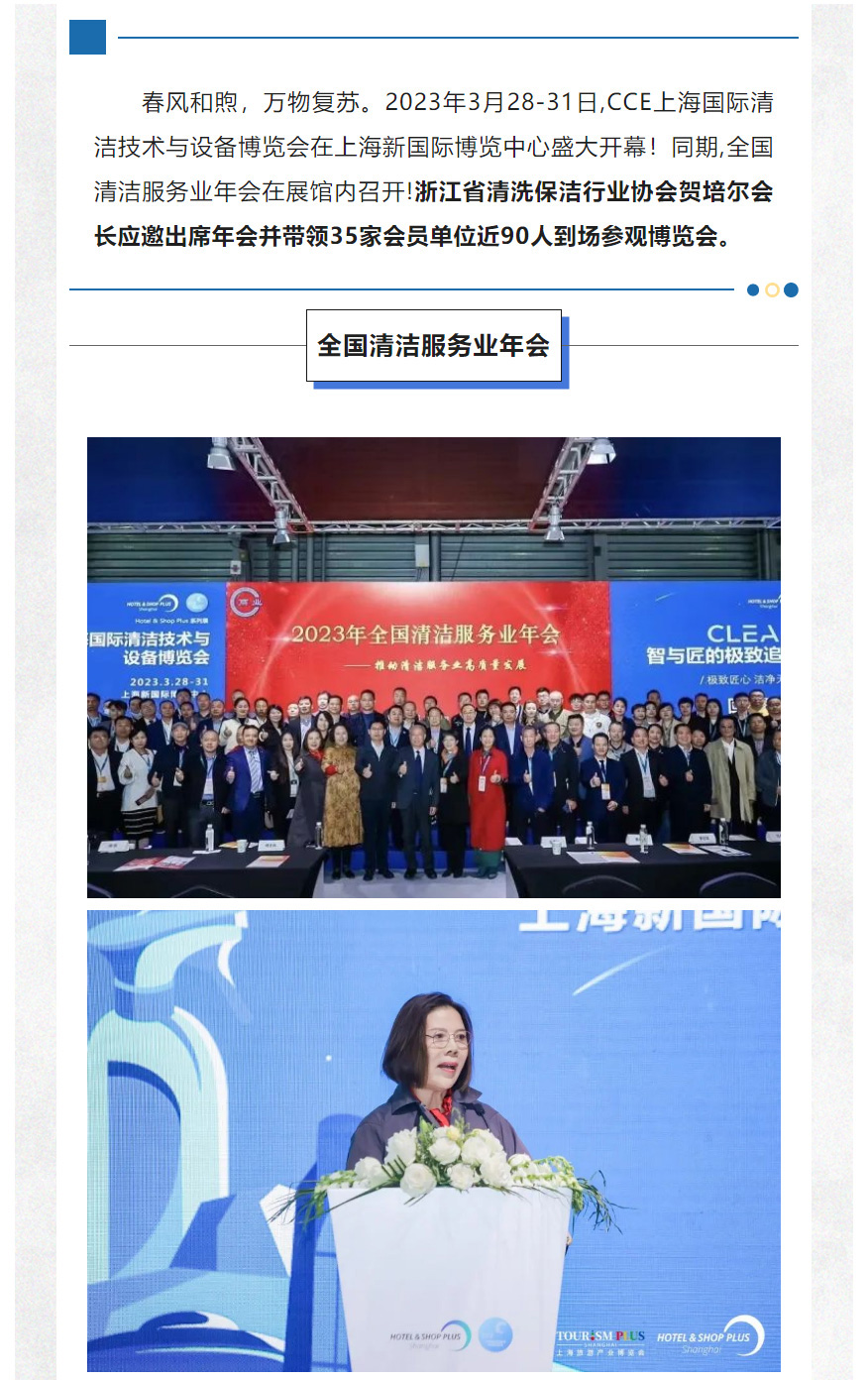 【协会动态】浙江省清洗保洁行业协会应邀出席2023年全国清洁服务业年会并组团参加上海国际清洁....