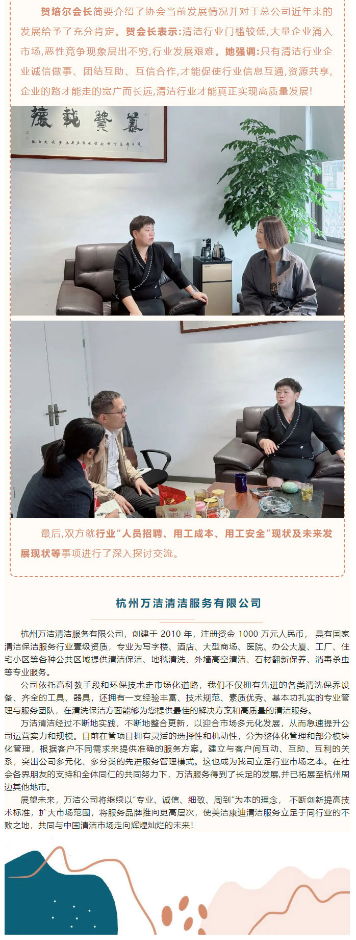 【会员走访】走访会员单位,倾听会员心声——浙清协会长贺培尔等一行走访杭州万洁清洁服务有限公司