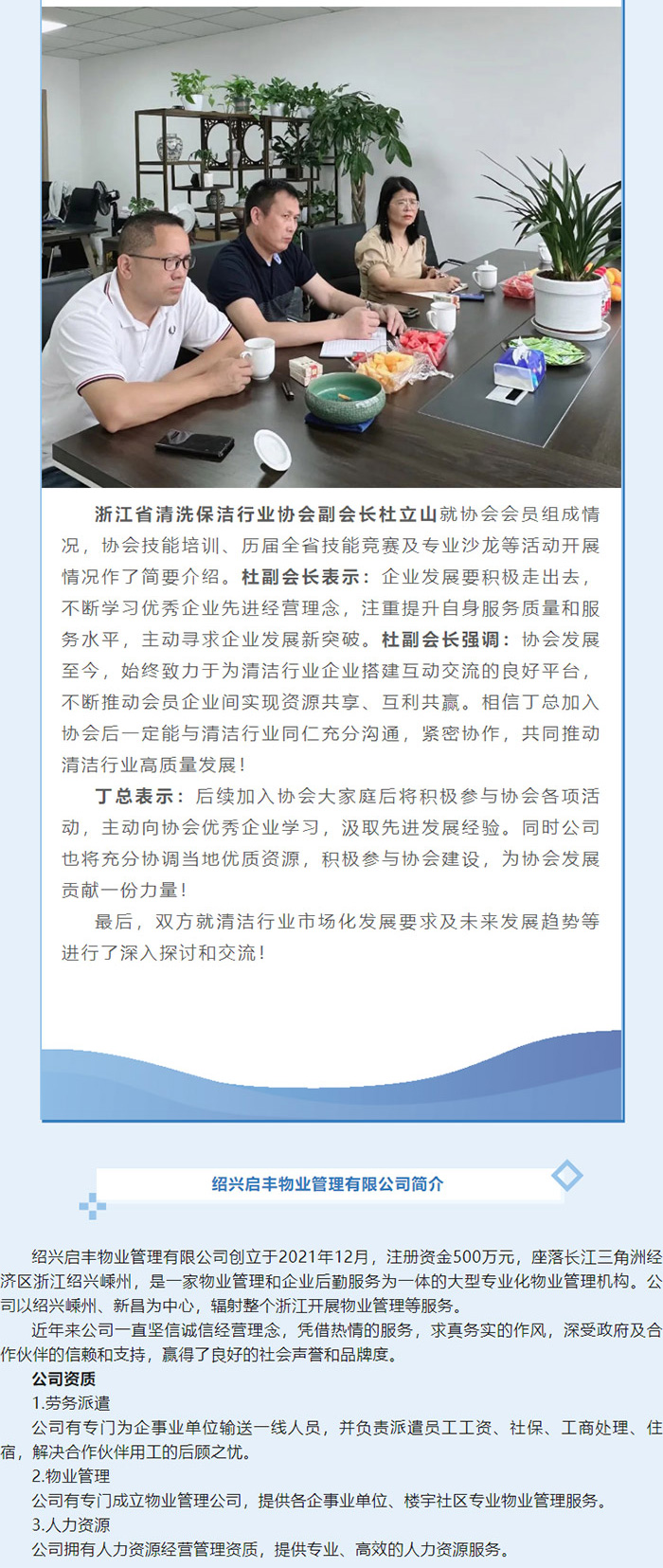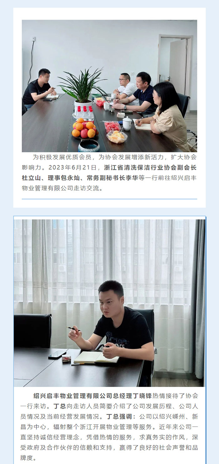【走访交流】浙江省清洗保洁行业协会一行前往绍兴启丰物业管理有限公司走访交流