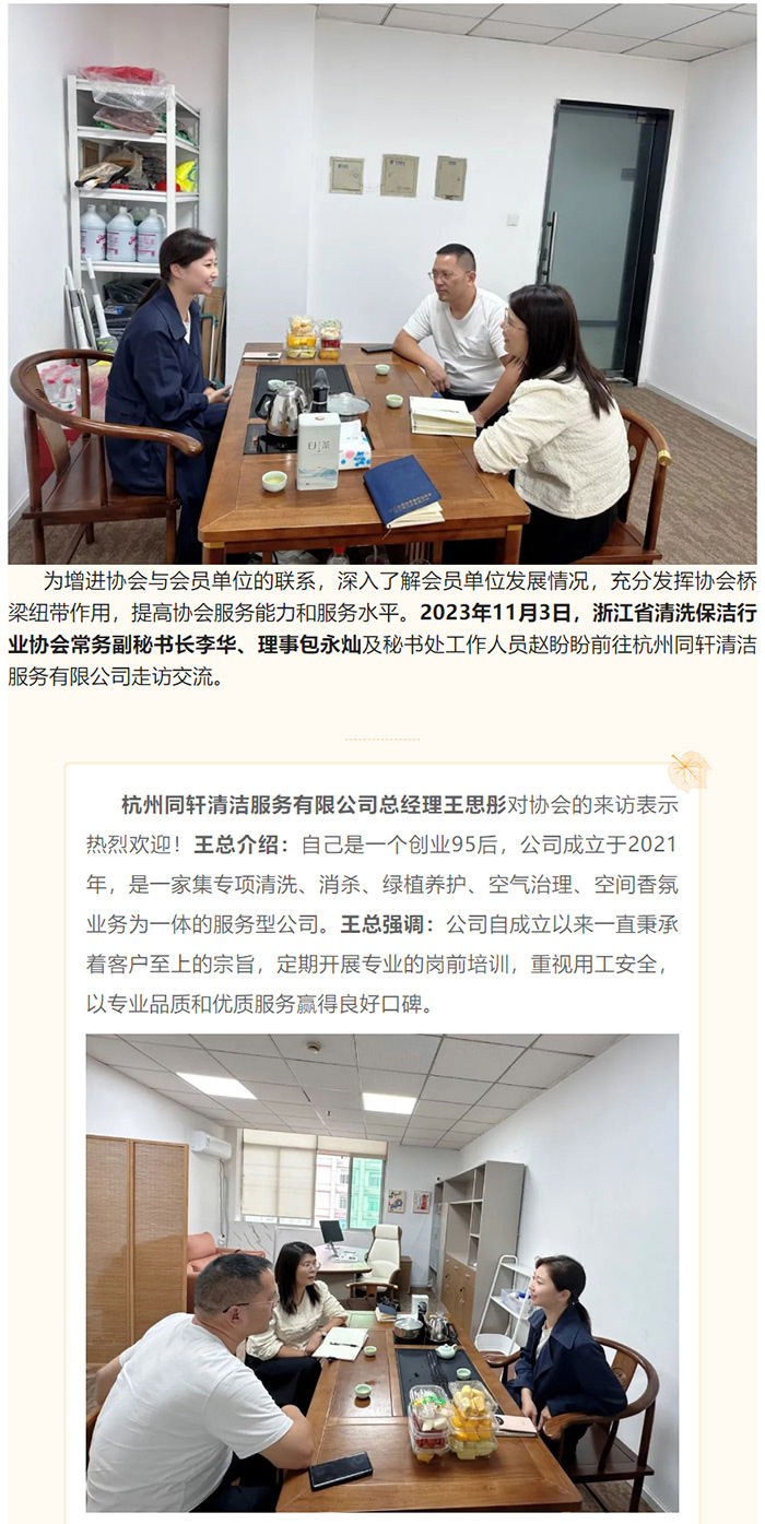 浙江省清洗保洁行业协会一行前往杭州同轩清洁服务有限公司走访交流