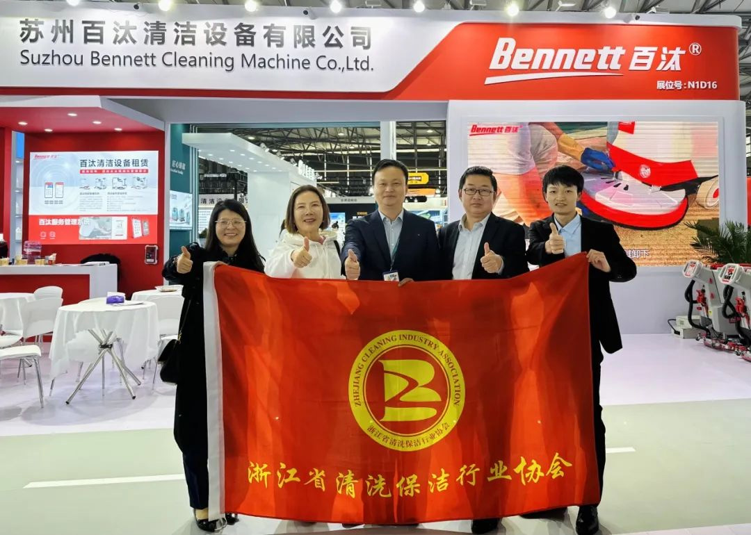 比赛期间,素有“亚洲清洁行业风向标”之称的CCE上海国际清洁技术与设备博览会在上海新国际博览中心隆重开幕!浙江省清洗保洁行业协会会长贺培尔带领29家会员企业代表约70人到场参观。