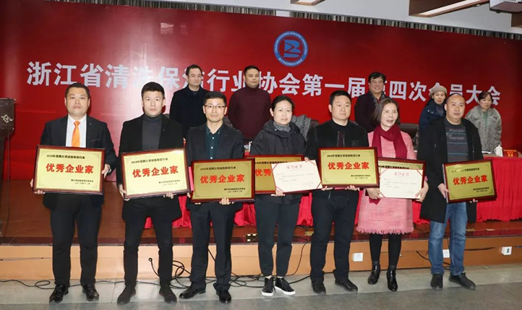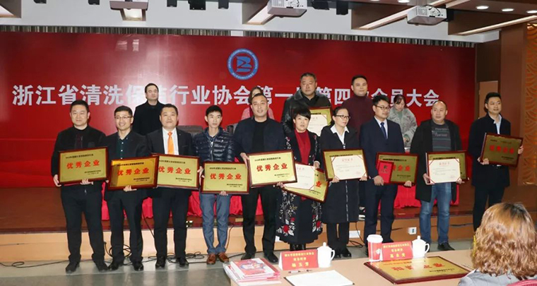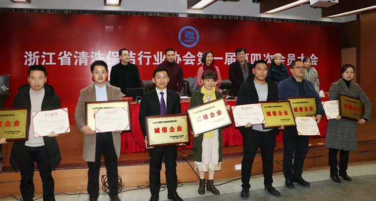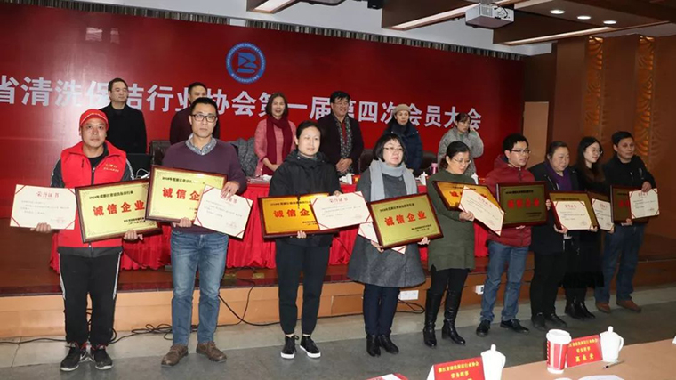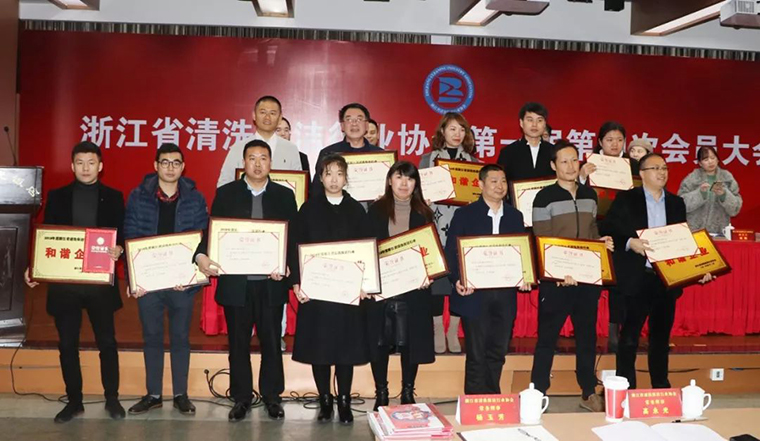 会上对获得2018年度浙江省清洗保洁行业“优秀企业”、“优秀企业家”、“诚信企业”、“和谐企业”和“优秀供应商”荣誉称号的会员单位给予表彰。