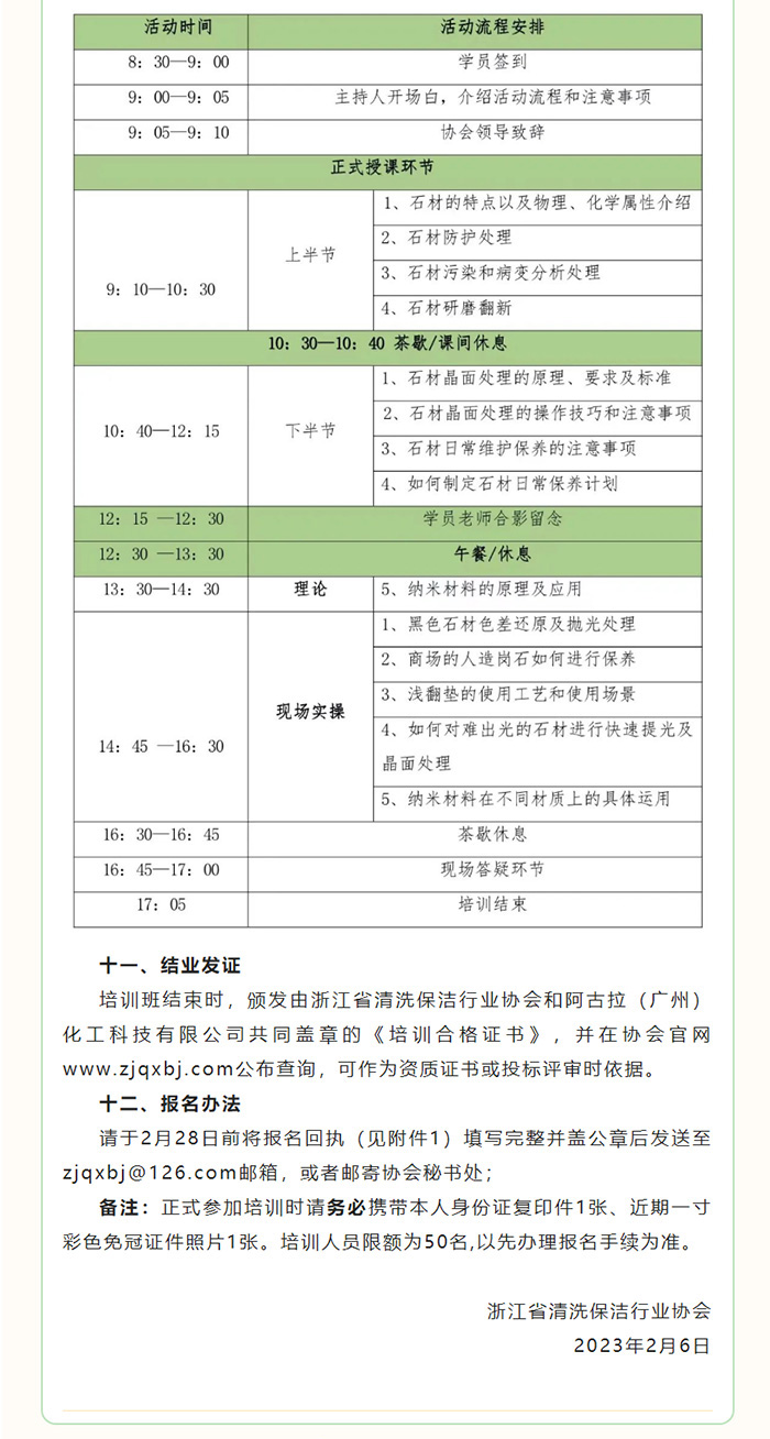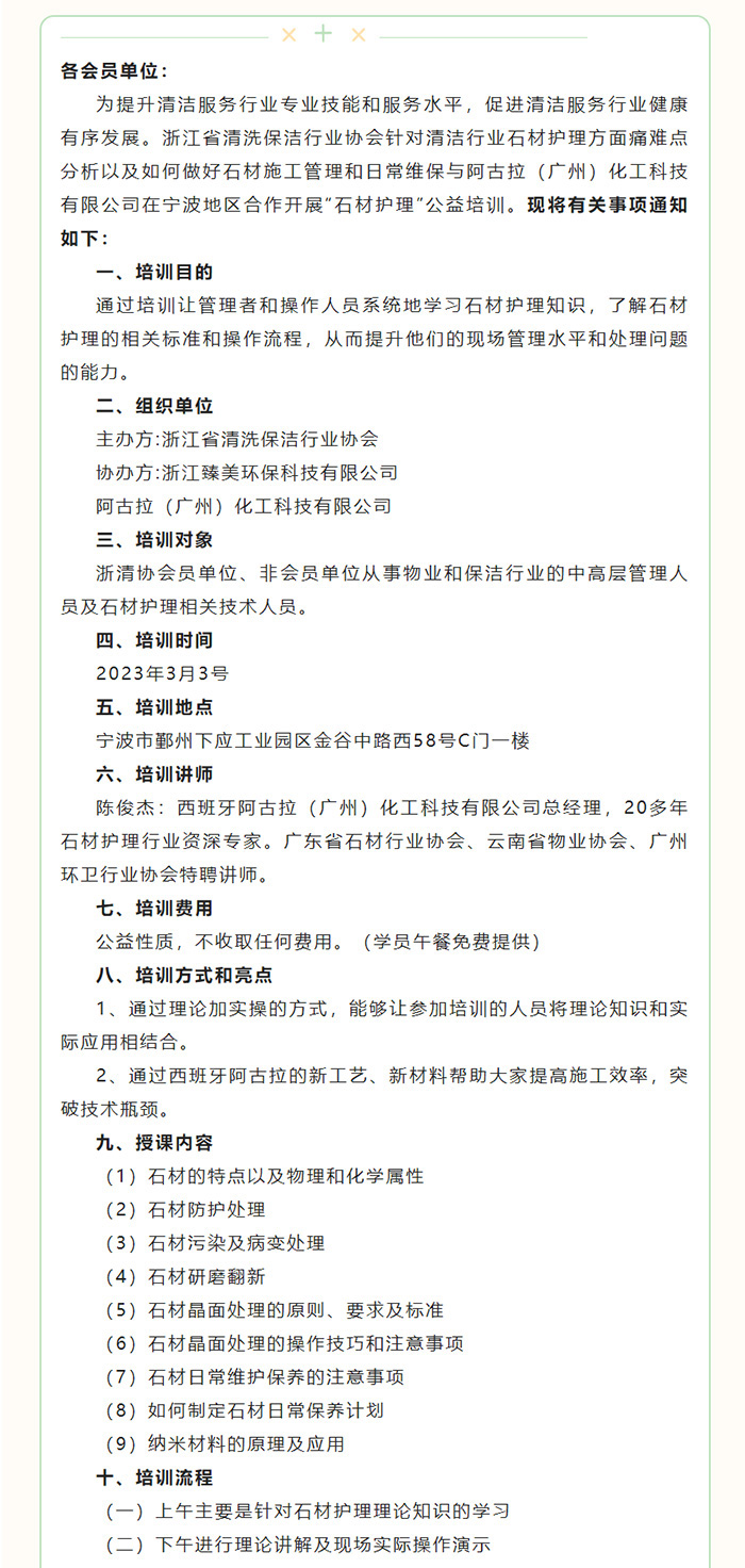 浙江省清洗保洁行业协会关于开展宁波专场石材护理公益培训的通知