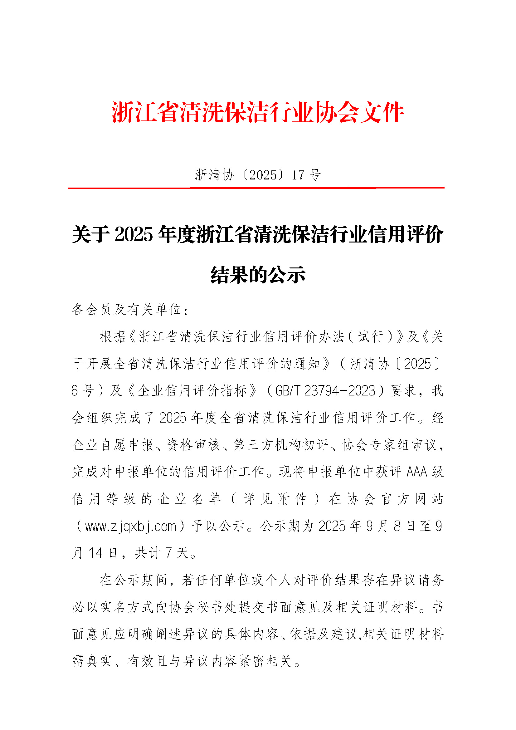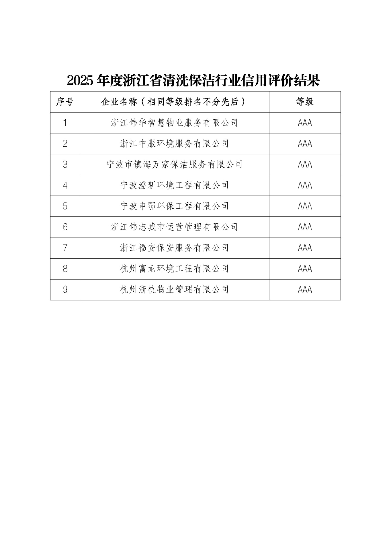 关于2025年度浙江省清洗保洁行业信用评价结果的公示.pdf