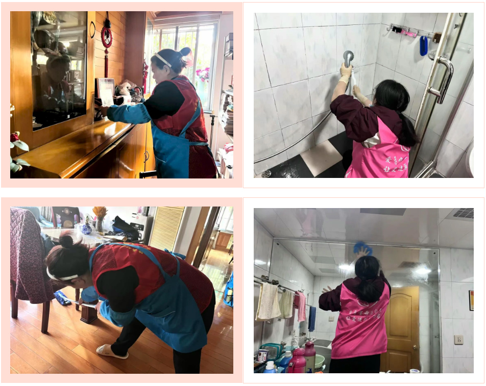 针对社区年长住户,协会组织会员单位志愿者携带专业清洁工具上门服务,细致开展居室整理、厨卫清洁、卫生死角清理等工作,为老人打造洁净舒适的居家环境,用行业专长守护长者健康与生活品质。